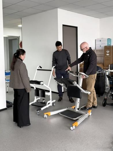 Didampingi oleh para prinsipal kami yang relevan, Bapak James membahas dua model lift transfer pasien multifungsi, memeriksa struktur sampel dengan cermat, dan melakukan uji coba di lokasi.